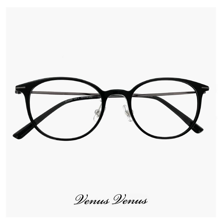 小さめ メガネ tr9288-c1 メンズ レディース ユニセックス モデル おしゃれ ブラック 黒縁 黒ぶち カラー 眼鏡 フレーム 小さい 小ぶり 中学生 高校生 小顔 の方に おすすめ UVカット venus×2