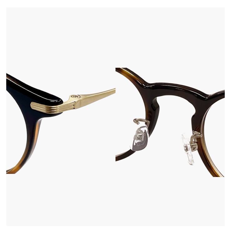 フレームシェイプはレンズが大きすぎない丸みのあるボストン型、クラシックな雰囲気でおしゃれなフレームです。