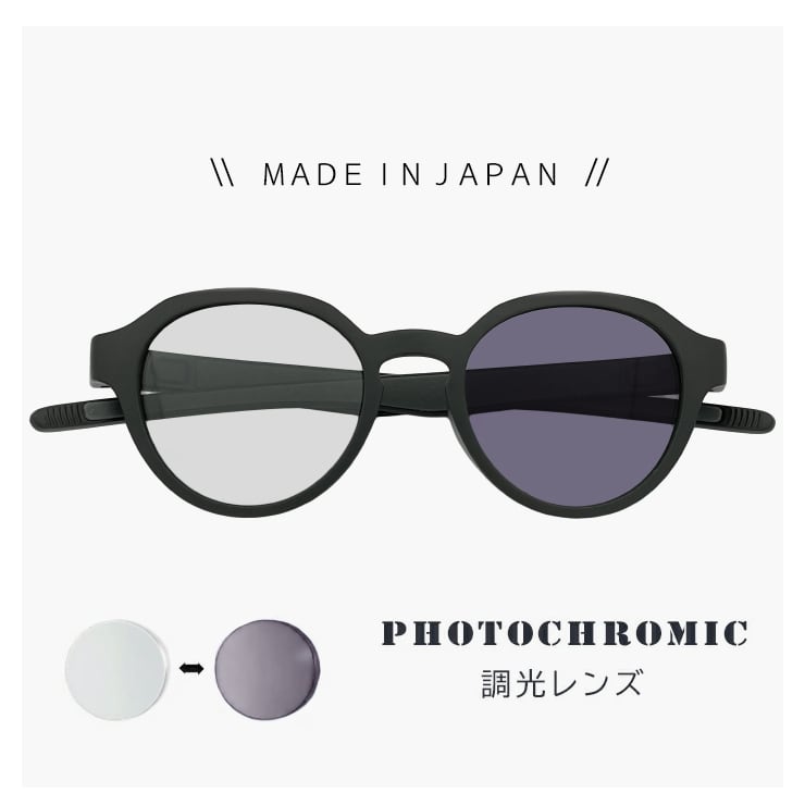 ・調光機能により太陽光による紫外線に反応して、レンズカラーが変化します。
