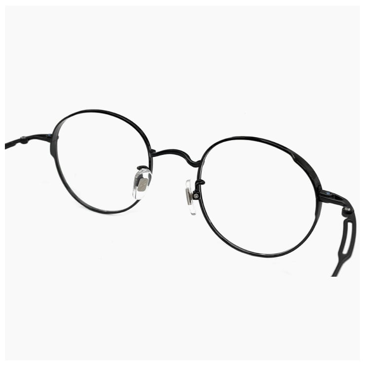 丸みのあるラウンドシェイプの細いフレームは知的で落ち着いた印象を与え仕事場でも普段着にも合わせやすくおすすめ。