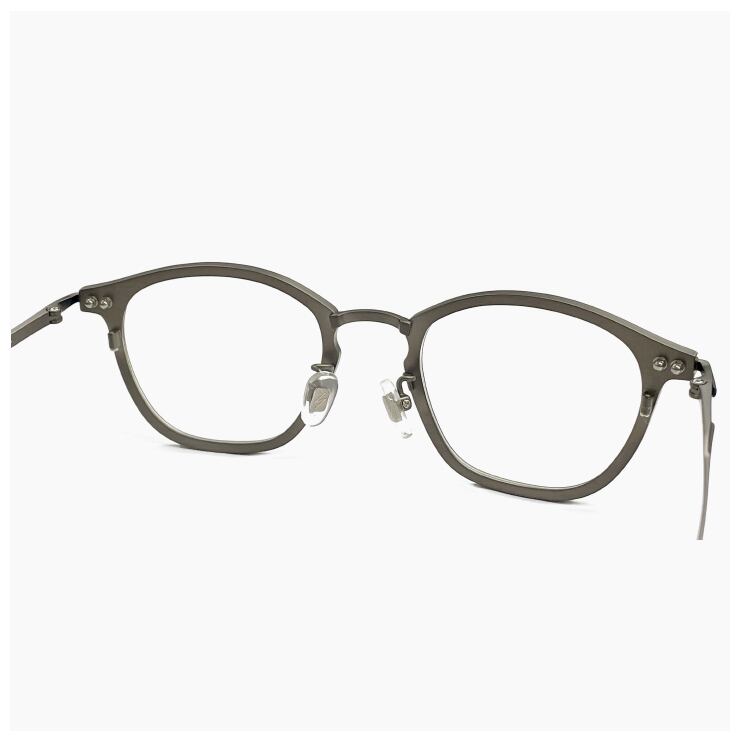 ひと目では素材の境界が見えないほどの一体感を持ち、ミニマルなシェイプとサイドのβチタンが、静かな緊張感を保ちながら存在する。