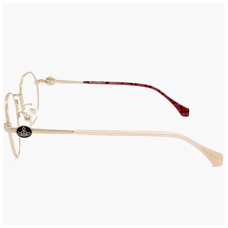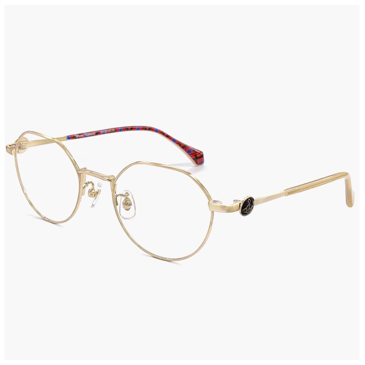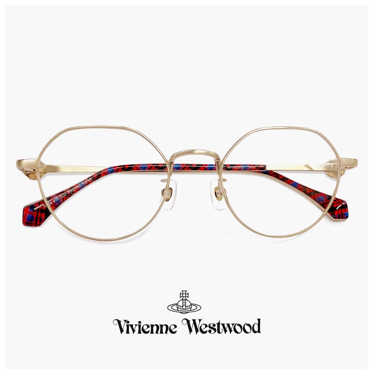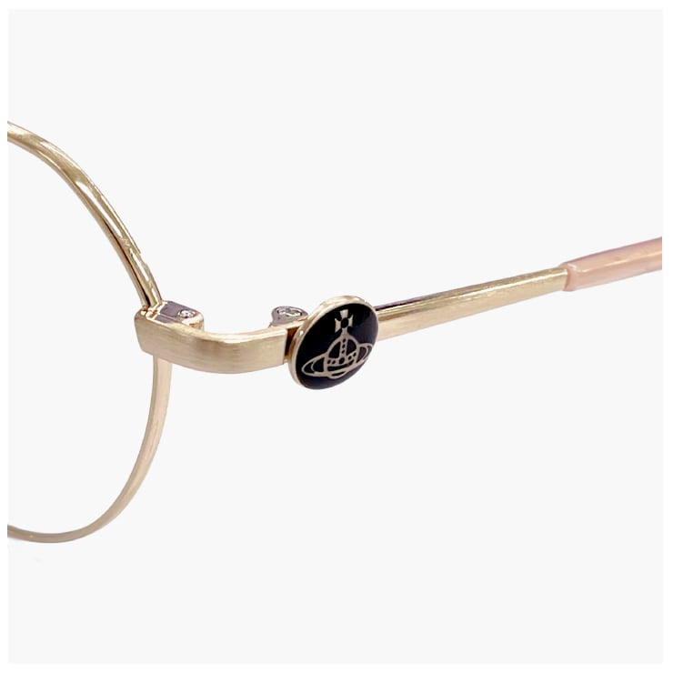 ヨロイからテンプルに掛けてカラーが繋がり、ひと癖あるデザインがVivienne Westwoodらしく魅力的。