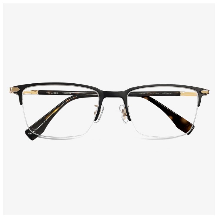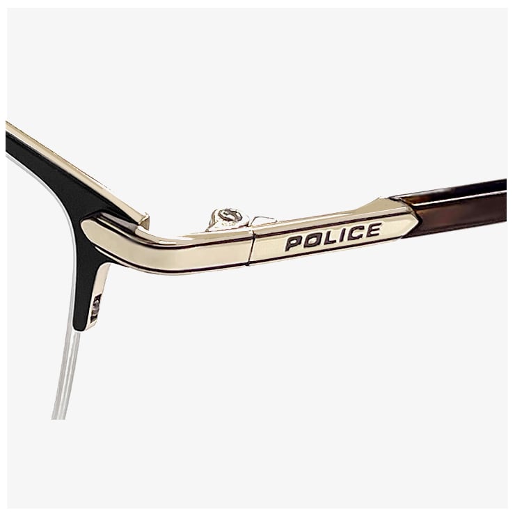 メンズ ポリス メガネ vplt92j-0300 VPLT92J POLICE 眼鏡 男性用 メタル チタン 製 ナイロール ハーフリム スクエア 型 フレーム 黒縁 黒ぶち ゴールド 金色