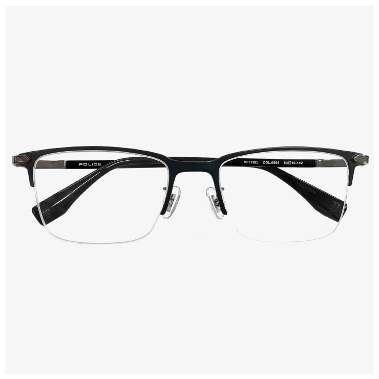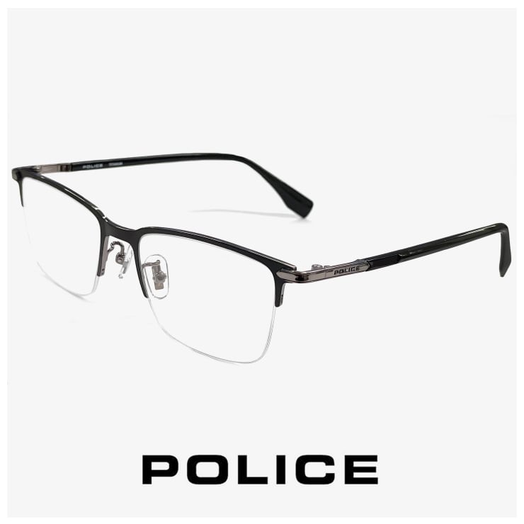 メンズ ポリス メガネ vplt92j-0568 VPLT92J POLICE 眼鏡 男性用 メタル titanium チタン 製 ナイロール ハーフリム スクエア 型 フレーム 黒縁 黒ぶち