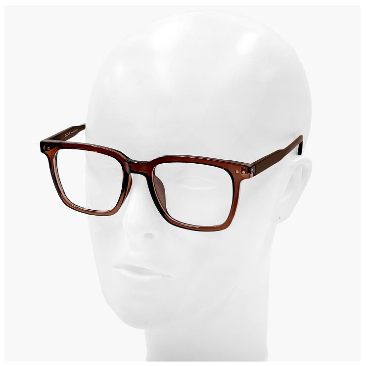 Lサイズ メガネ 9619-6 メンズ レディース ユニセックス 眼鏡 大きい フレーム 大きめ 幅広 幅が広い おしゃれ クリアブラウン ダミーレンズ発送