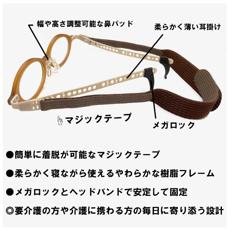 寝ながらメガネ 優眠 ゆうみん 要介護・介護従事者 寝たきり 眼鏡 介護 便利 グッズ かけたまま寝れるメガネ 痛くない 寝たまま マジックテープ 剣道 眼鏡