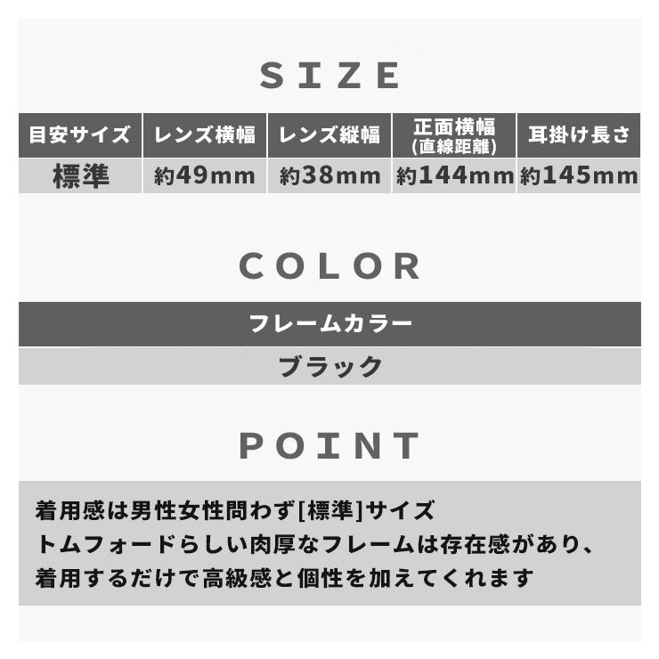 伊達メガネとしてすぐに使用ができ、左レンズ上部にはTOMFORDのロゴが刻印されています。
