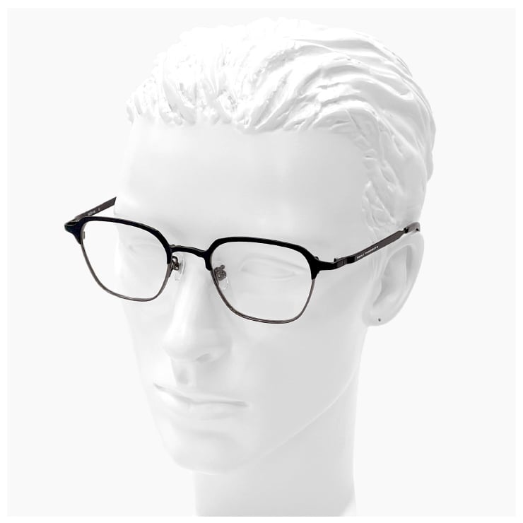 ヘキサゴン型のアイシェイプを採用し、特殊リムと眉部分はあえて分離させた組み合わせにすることで独特の立体感を演出。