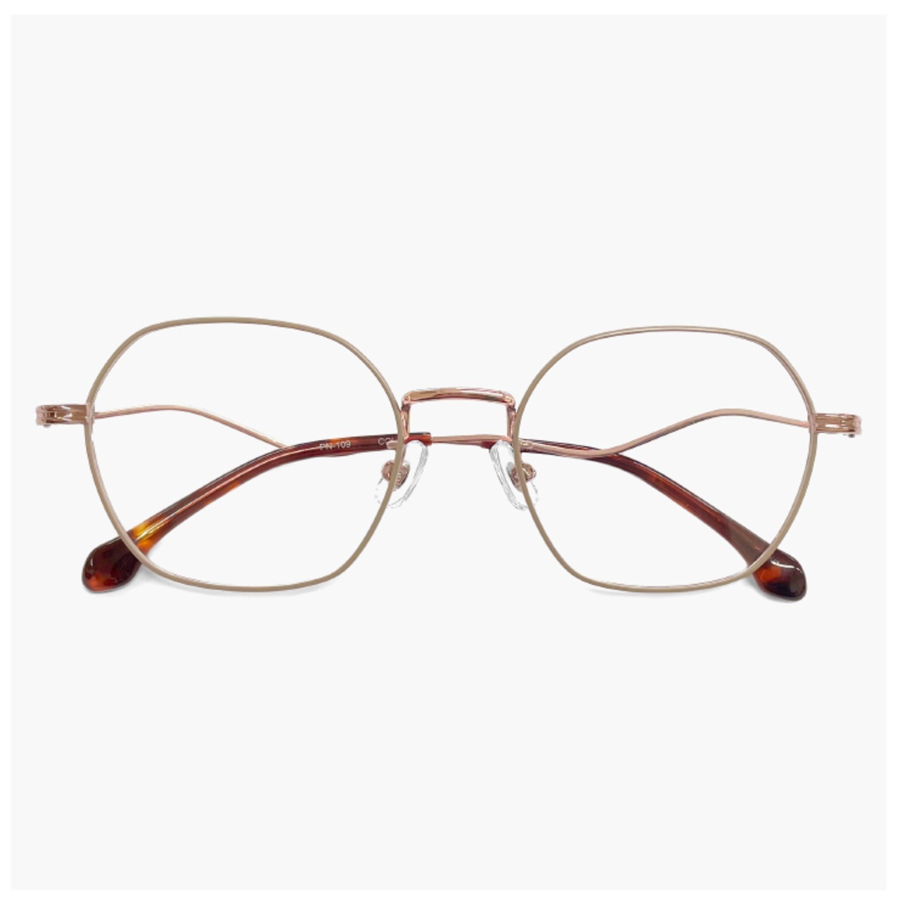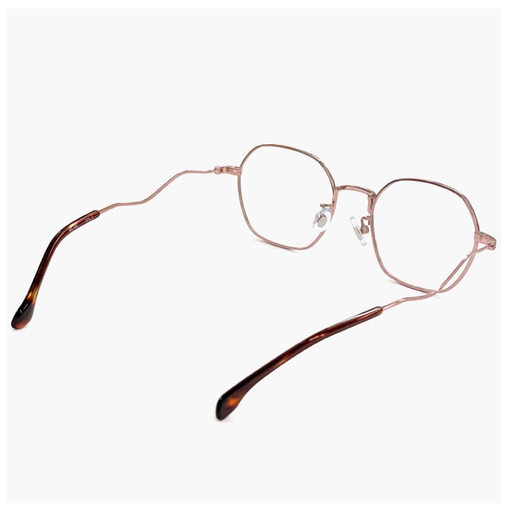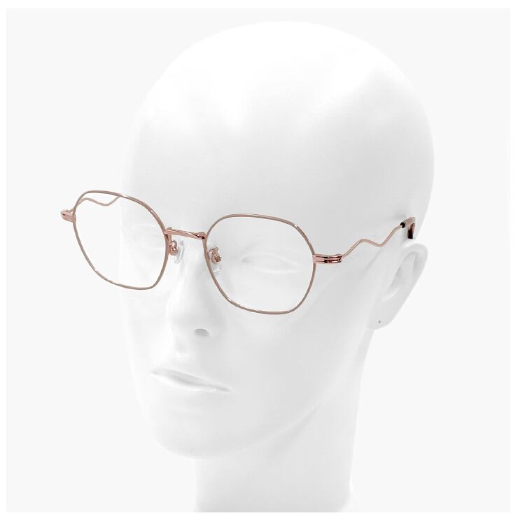 レディース メガネ pn-109-1 眼鏡 おしゃれ パーソナルカラー イエベ ヘキサゴン 六角形 多角形 型 メタル フレーム マットベージュ × メタリックピンク カラー ダミーレンズ発送