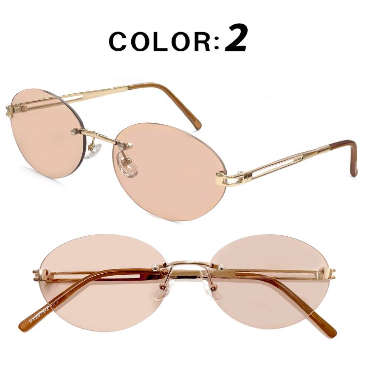 サングラス py2918 レディース メンズ ユニセックス モデル uvカット ツーポイント フレームレス 枠なし オーバル 型 メタル フレーム ライトカラー レンズ 人気 おしゃれ おすすめ 紫外線対策 薄い 色 レンズ ファッション