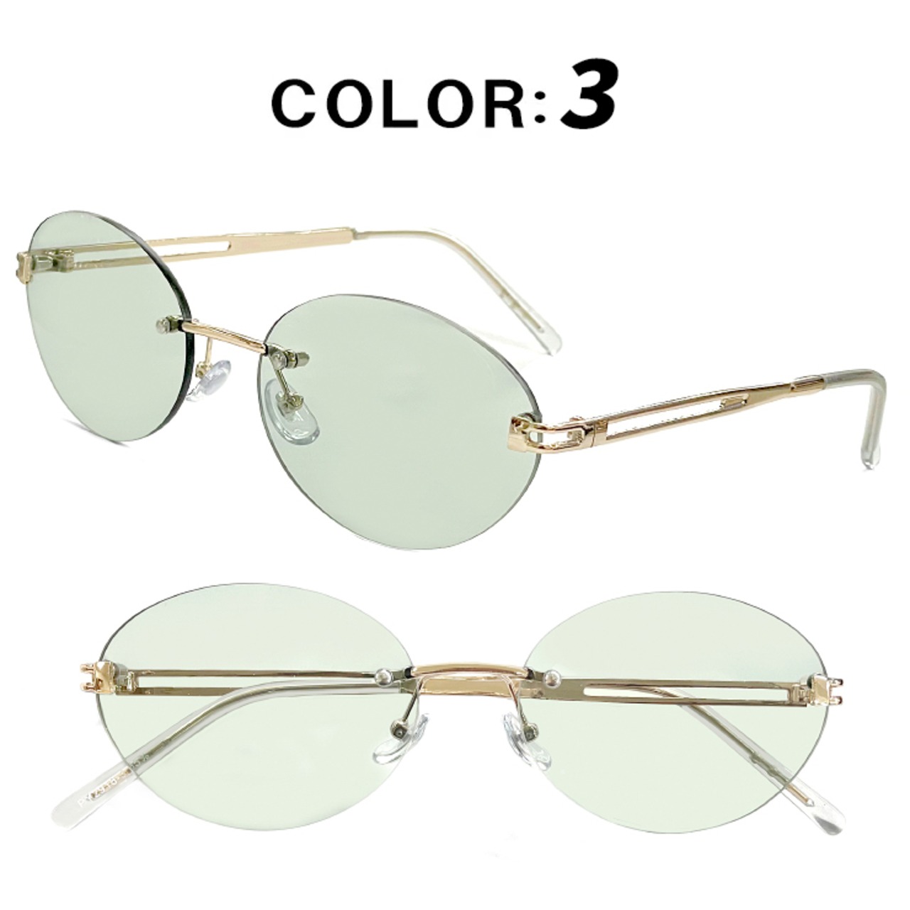 【定形外郵便 】 サングラス py2918 レディース メンズ ユニセックス モデル uvカット ツーポイント フレームレス 枠なし オーバル 型 メタル フレーム ライトカラー レンズ 人気 おしゃれ おすすめ 紫外線対策 薄い 色 レンズ ファッション