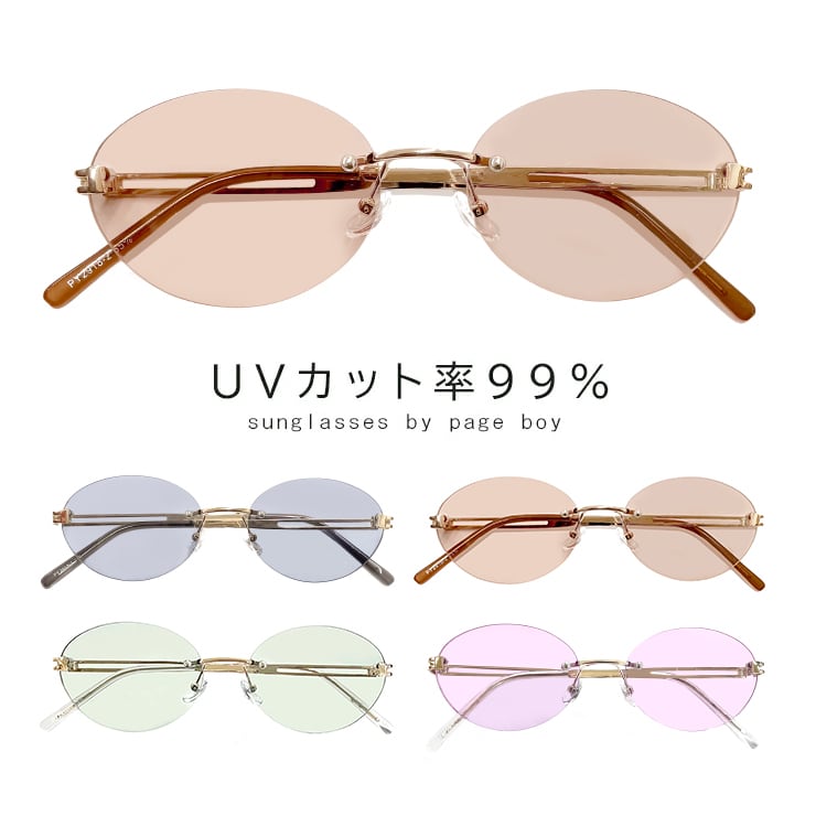 サングラス py2918 レディース メンズ ユニセックス モデル uvカット ツーポイント フレームレス 枠なし オーバル 型 メタル フレーム ライトカラー レンズ 人気 おしゃれ おすすめ 紫外線対策 薄い 色 レンズ ファッション