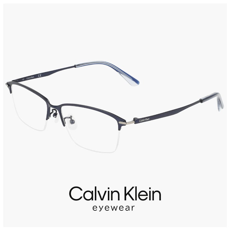 メンズ カルバンクライン ck21135a-438 メガネ calvin klein 眼鏡 CK21135A ナイロール ハーフリム 型 めがね カルバン・クライン チタン メタル フレーム ブルー カラー フレーム ダミーレンズ発送