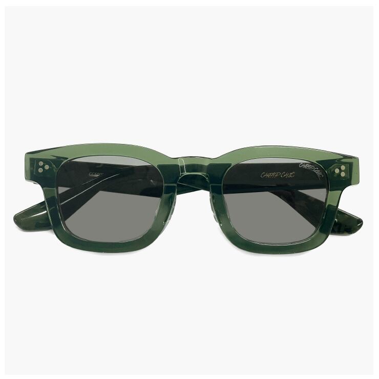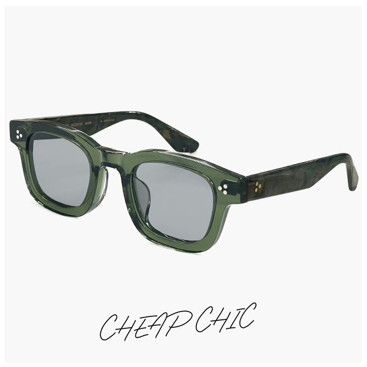 小ぶり サングラス CHEAP CHIC cc5028 gn メンズ レディース ユニセックス モデル 顔 小さめ 小さい 小顔 ブランド 個性的 おしゃれ かわいい スクエア 型 太 フレーム クリア グリーン uvカット グレー レンズ