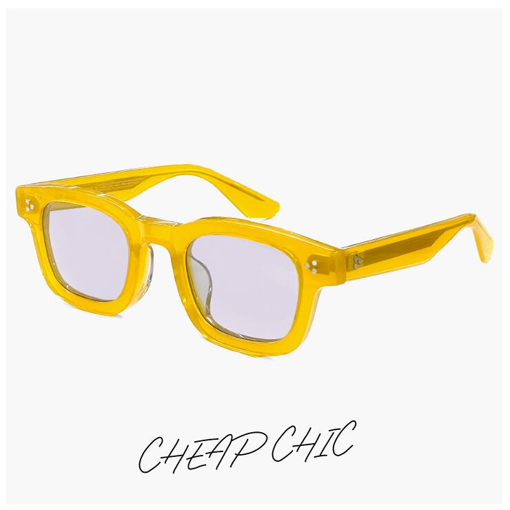 小ぶり サングラス CHEAP CHIC cc5028 yl メンズ レディース ユニセックス モデル 顔 小さめ 小さい 小顔 ブランド 個性的 おしゃれ かわいい スクエア 型 太 フレーム イエロー uvカット 薄い色 スモーク ライトカラー レンズ