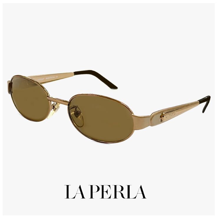La Perla ラペルラ サングラス spe500-r09 オーバル 型 レディース メンズ ユニセックスモデル メタル フレーム イタリア製 アンティークゴールド カラー バネ蝶番