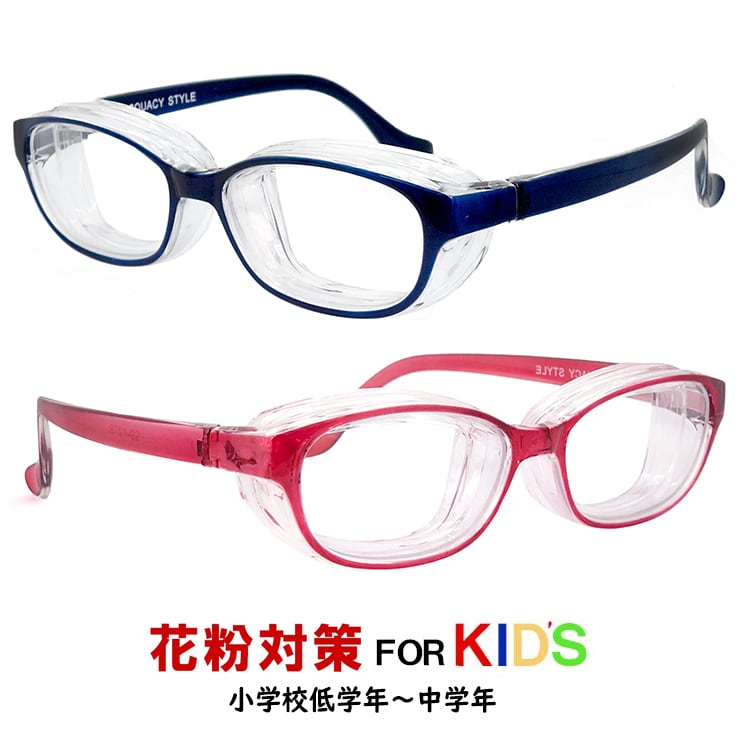 子供用 花粉メガネ 花粉対策 スカッシースタイル キッズ 8730 花粉 メガネ 花粉防止 ゴーグル 曇り止め くもり止め ブルー ピンク 男の子 女の子 [ 飛沫 防止 PM2.5 対策にも オススメ ] SSサイズ Sサイズ おしゃれ な 伊達メガネ 約4歳 ~ 8歳 小学校 低学年 まで対象