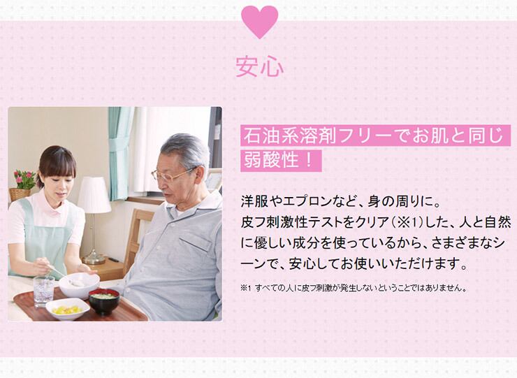 噴霧後の衣類に触れて、肌に異常が現れた場合は直ちに使用をお止め下さい。