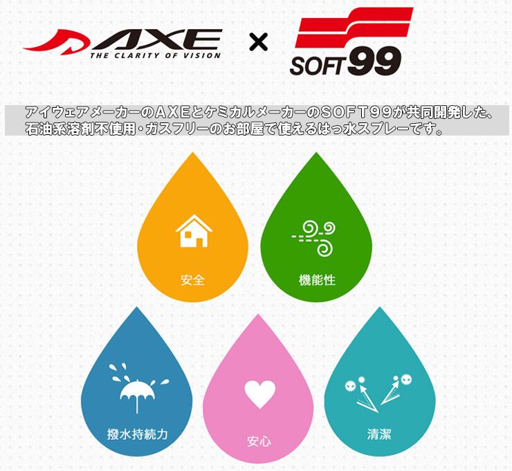 アイウェアメーカーのAXEとケミカルメーカーのSOFT99が共同開発した環境に優しい!繊維用の室内で使える安全のはっ水スプレー