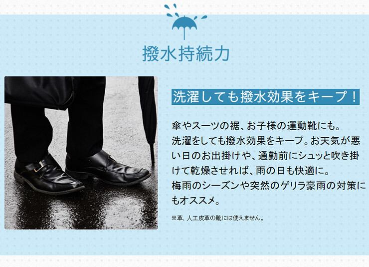 撥水成分が繊維一本一本を包み込むので通気性を損なわず、撥水剤特有のニオイがしません