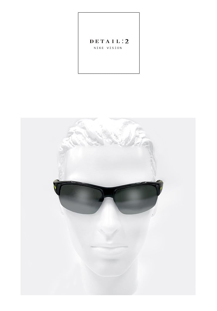 交換可能なレンズ、調節可能なテンプル、あらゆる角度で歪みのない視界を提供するナイキマックス レンズテクノロジーが特色です。