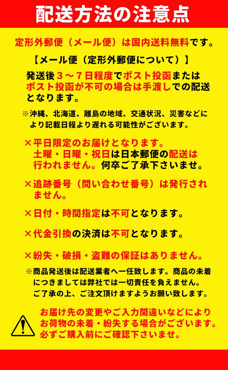 その他ご注意点は【メール便・定形外郵便の注意事項】をご確認下さい。