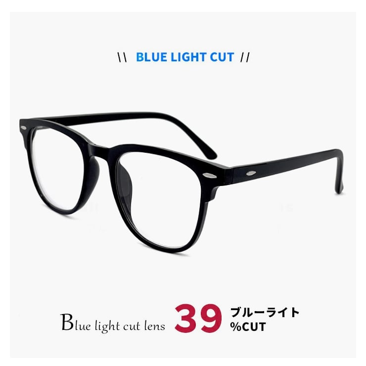 ブルーライトカット 伊達メガネ メンズ レディース ユニセックス pyb106 39%カット クリアサングラス ページボーイ ダテ眼鏡 ウェリントン型 タイプ フレーム uvカット 紫外線対策 PC スマホ パソコンメガネ 黒縁 黒ぶち