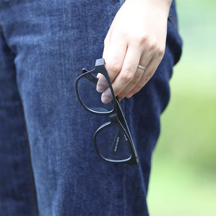 日本人の骨格に合わせてノーズやテンプル (つるの部分) の形状を設計しているのでズレにくく、着けていることを忘れてしまうような軽快な着用感。
