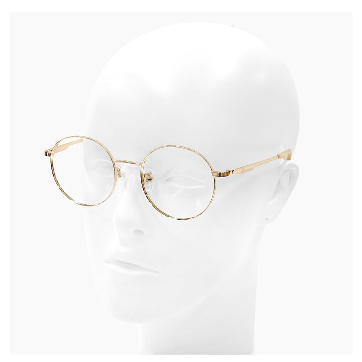 丸メガネラウンド型フレームと細身のメタルフレームが合わさることでオシャレで柔らかく知的な雰囲気の印象を与えます。